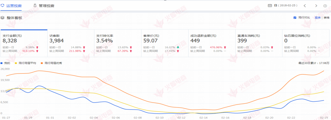 直通车的降费从500多降到了200左右,产品点击转化远超行业平均,店铺装修使产品更加美观,产品浏览量大幅上升